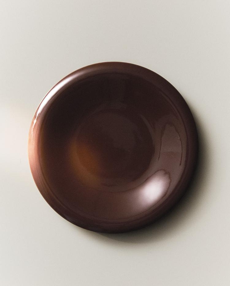 Desertni tanjir od otporne keramike. Jednostavnog je dizajna, sa emajliranom završnom obradom i blago podignutim zaobljenim rubom.