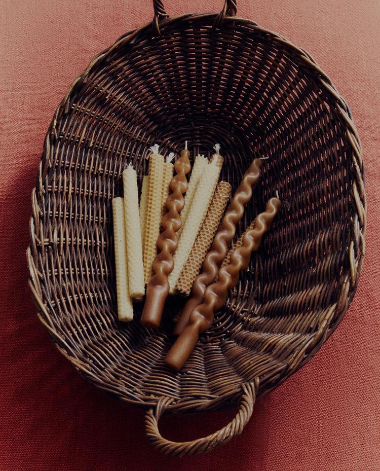 Dekorativne sveće od voska izduženog dizajna i neprekidnog talasastog oblika, stvarajući uvijenu siluetu većeg volumena. Imaju ravnu bazu za stabilno postavljanje i vidljiv centralni fitilj. Komplet uključuje 2 sveće.
