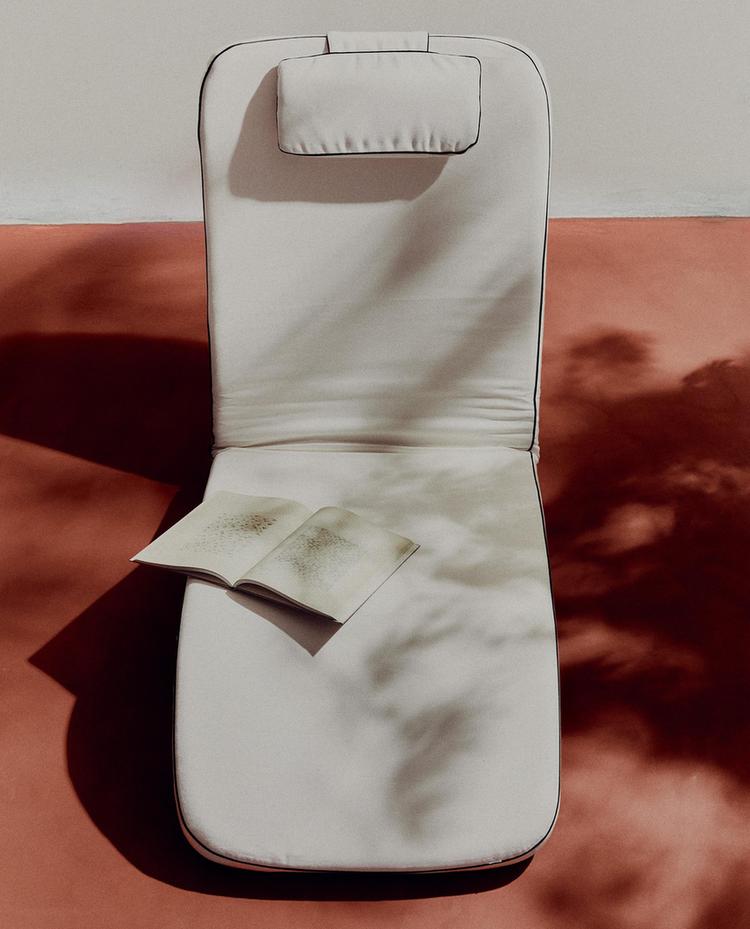 Podstavljena spoljna ležaljka za pod sa naslonom za leđa i osloncem za noge koji se podešavaju u više položaja putem mehanizma na klik (6 položaja za naslon i 4 za oslonac za noge). Jednobojni dizajn sa kontrastnim rubom. Uključuje torbu koja olakšava skladištenje i transport. Potpuno je odvojiva i periva prema uputstvima za održavanje.
