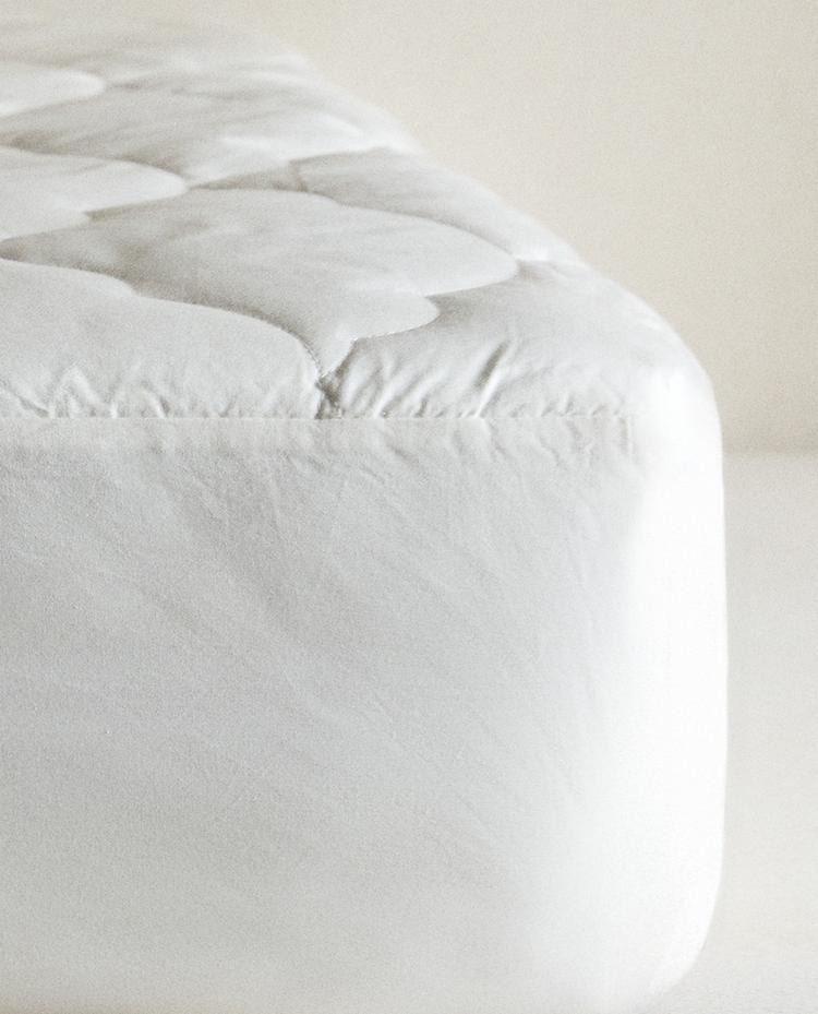 Bela pamučna zaštitna navlaka za dušek sa tkanjem od 233 niti (TC) koja pruža veću gustinu, mekoću i otpornost. Sadrži tanak vodootporan sloj od poliuretana koji obezbeđuje pravilnu zaštitu dušeka od tečnosti i vlage, čuvajući ga u optimalnom stanju.