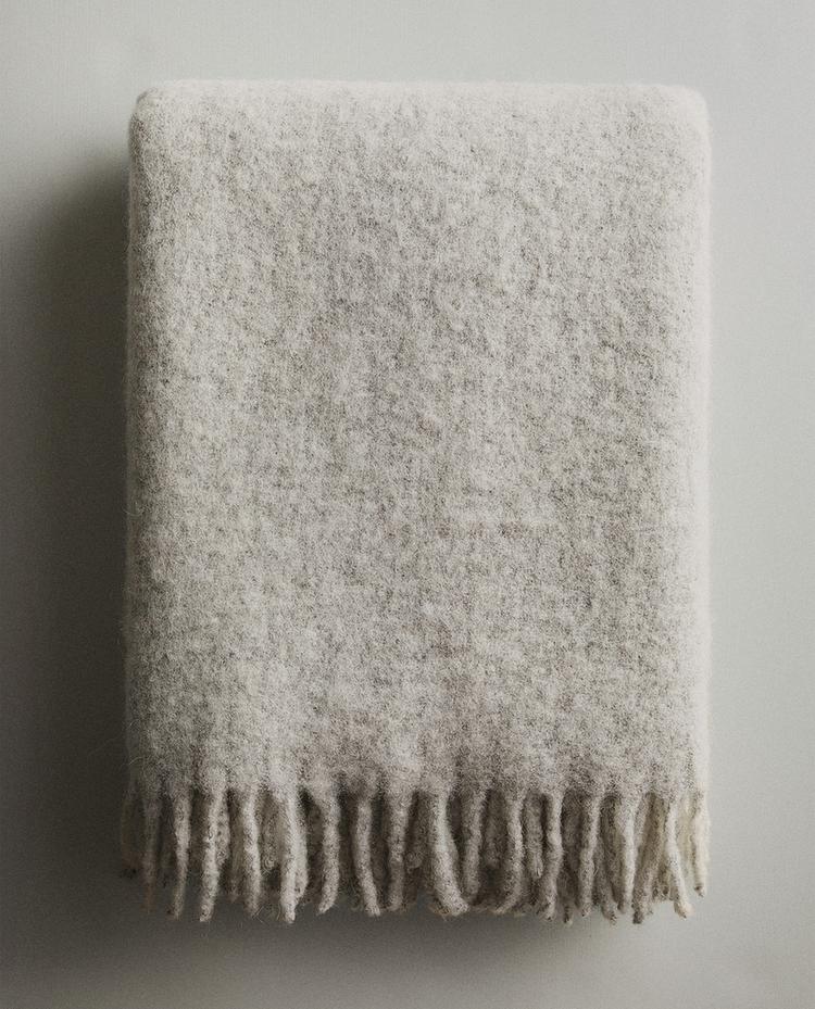 Ukrasno jednobojno vuneno ćebe sa resama.