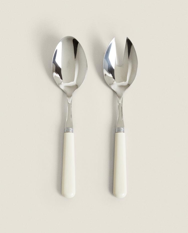 Stainless steel cutlery with a simple handle in a neutral tone.