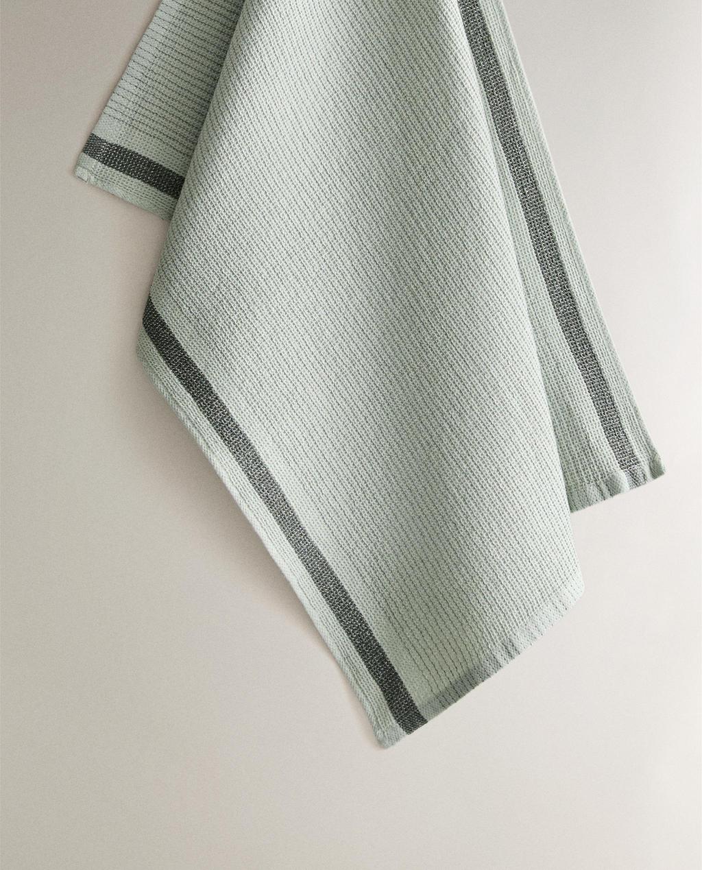 WAFFLE-KNIT TEA TOWEL WITH STRIPE | Zara Home Saudi Arabia