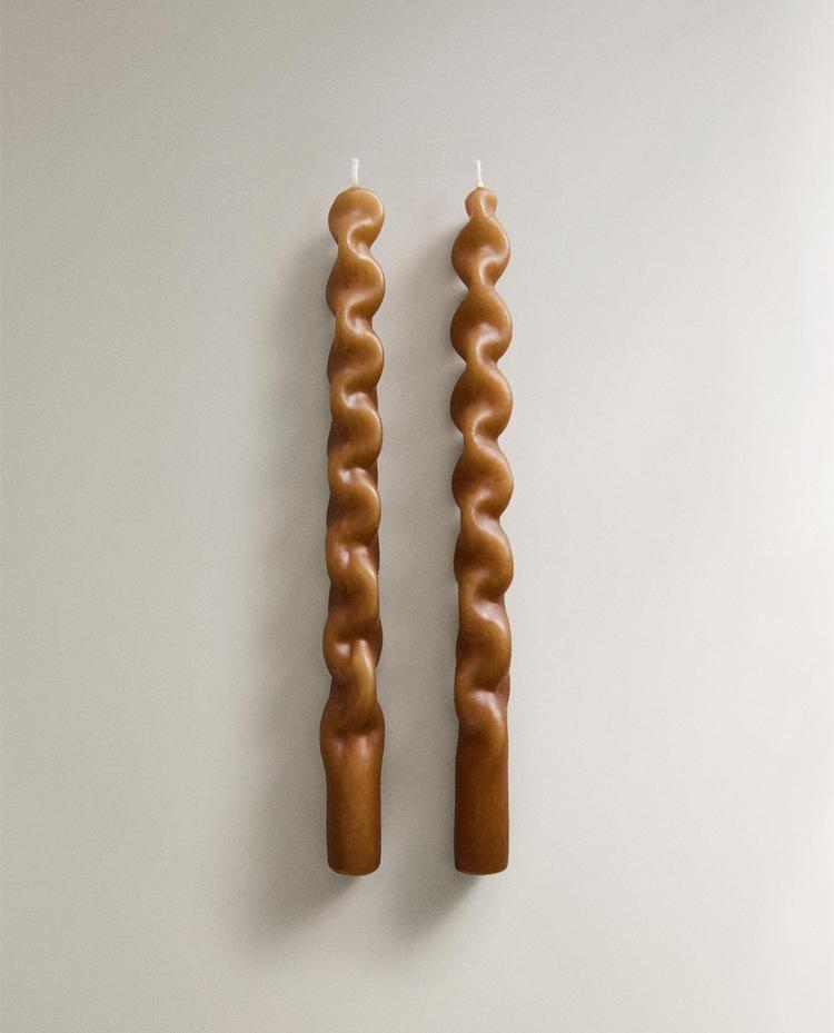 Dekorativa vaxljus med en lång, kontinuerlig vågig design, som skapar en volym vriden silhuett. Raka bas för stabilt stöd och synlig mittveke. Förpackningen innehåller 2 ljus.