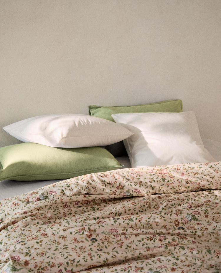 Påslakan i bomullssatäng med en trådtäthet på 300 och klassiskt blommönster.