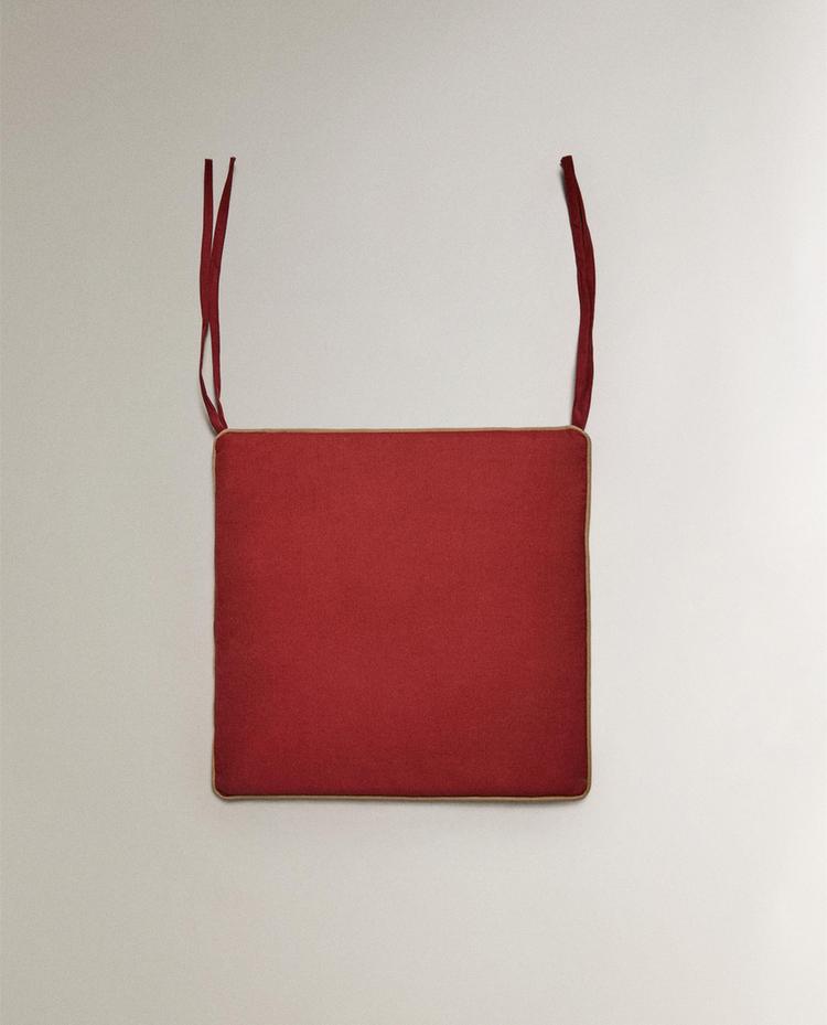 KONTRAST STOLSDYNA 409 SEKRÖDAKTIG|1377/009/609Lätt vadderad stolsdyna i bomull med kontrastfärgad kant. Fästs vid sätet med knytband i hörnen.LängdBreddDjup3 cm37.50 cm44 cm409 SEK Kommer snart Dela info om varan