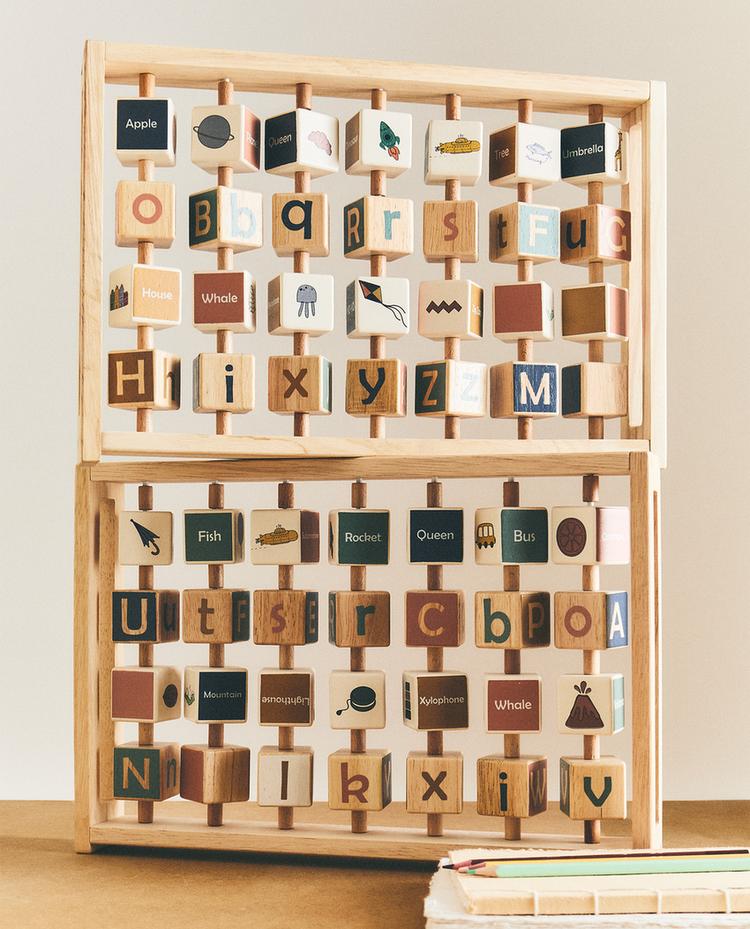 Abeceda z kaučukového dreva v angličtine, na uľahčenie učenia písmen pre najmenších.