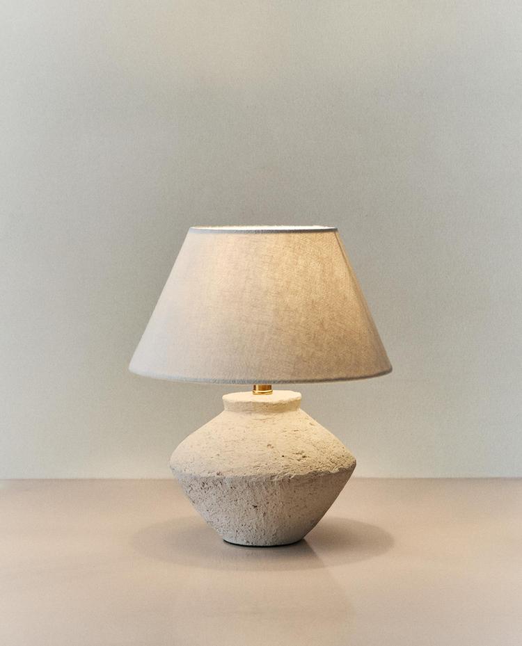 โคมไฟฐานดินเผาขนาดเล็กและโป๊ะครอบผ้าลินิน