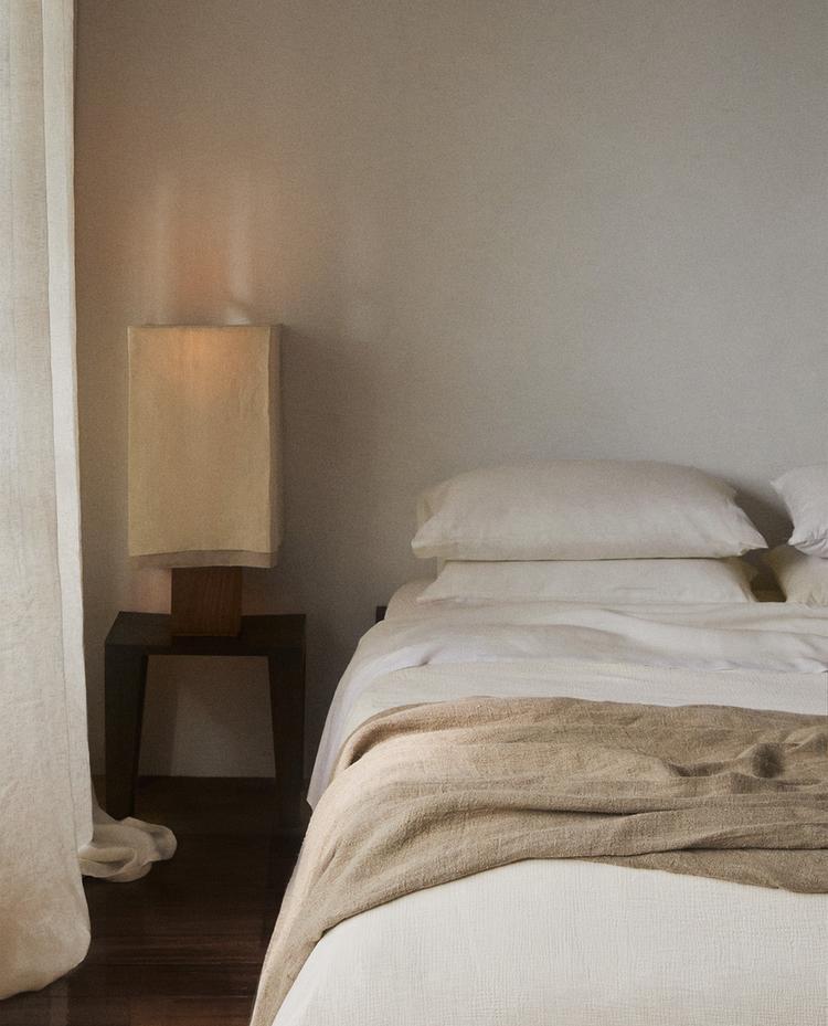 Cotton muslin duvet cover with texture on the outside and a plain design on the inside.