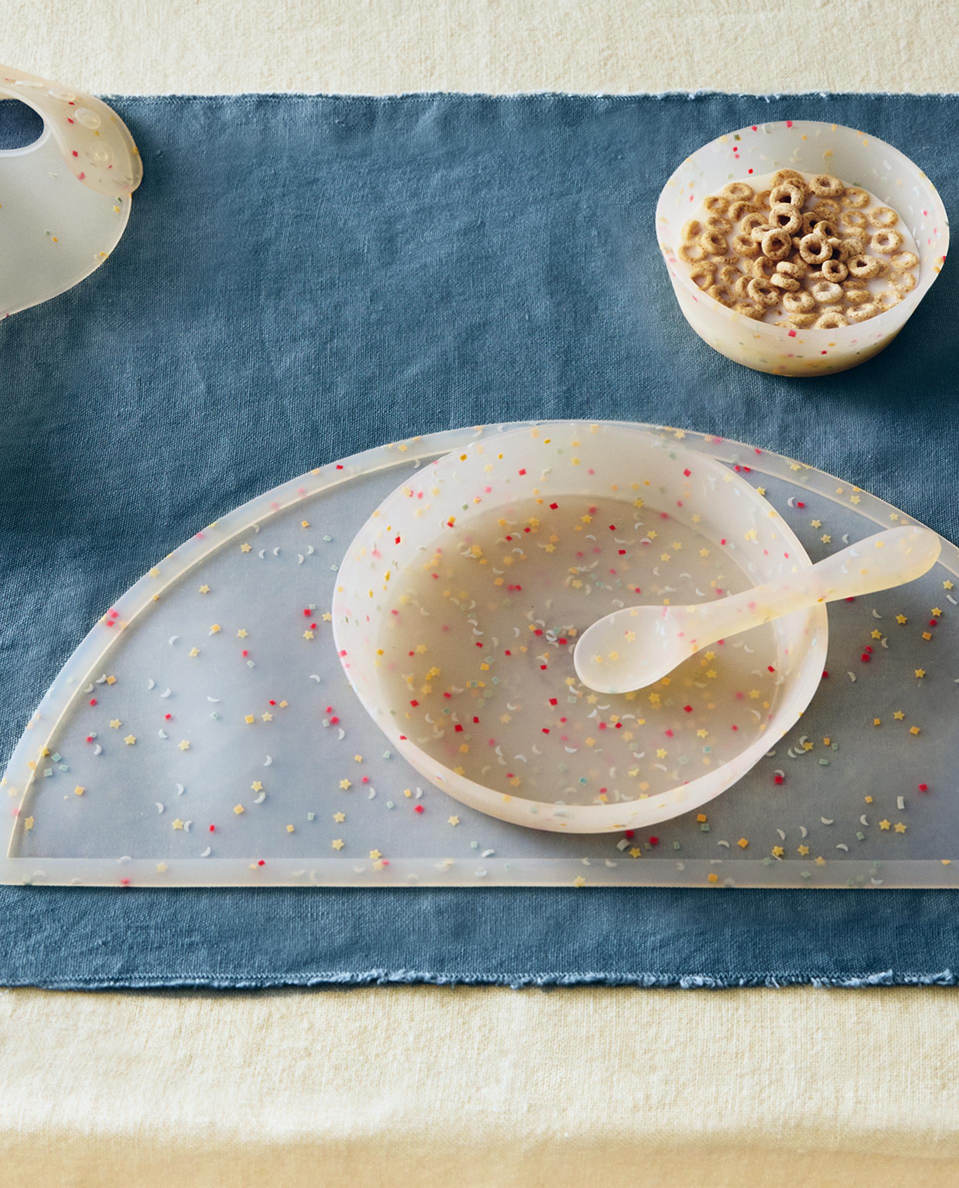 طقم أواني طعام سيليكون للأطفال بقصاصات ملونة