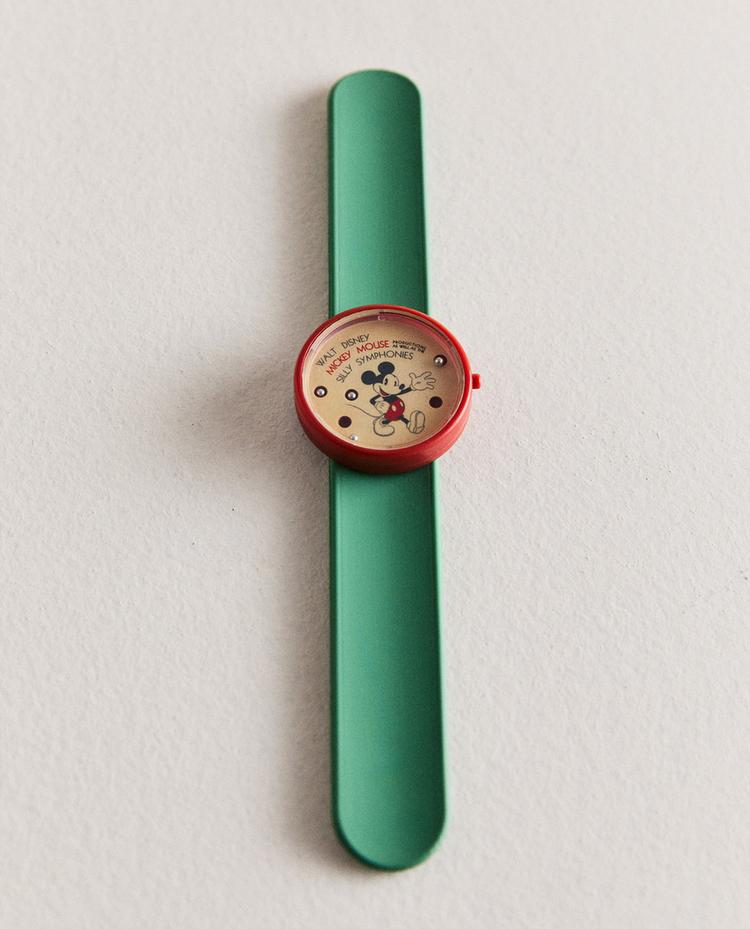 Jouet pour enfant, une montre avec un circuit de billes sur le cadran et une illustration de Mickey, l'un des personnages de © Mickey Mouse ©Disney.