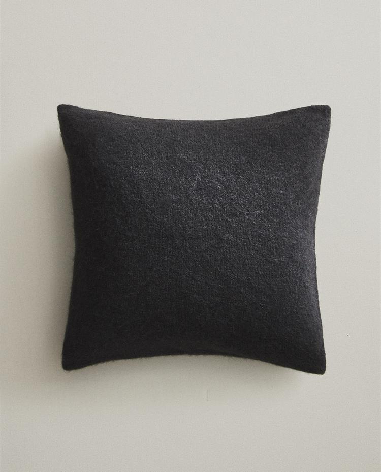Yün ve alpaka karışımı düz renk kırlent kılıfı.