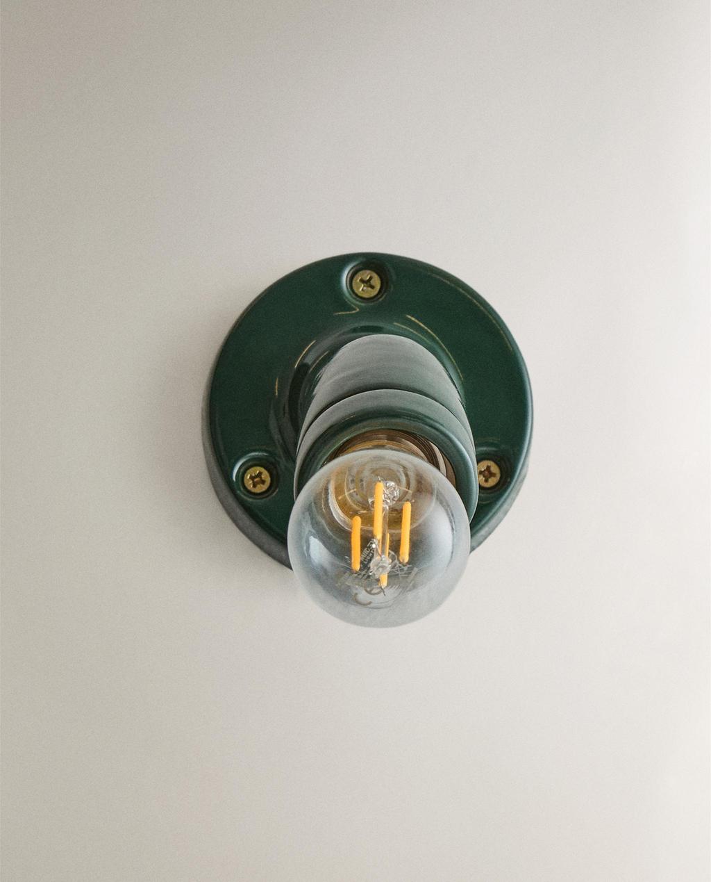 Emaye seramikten yapılmış duvar lambası.