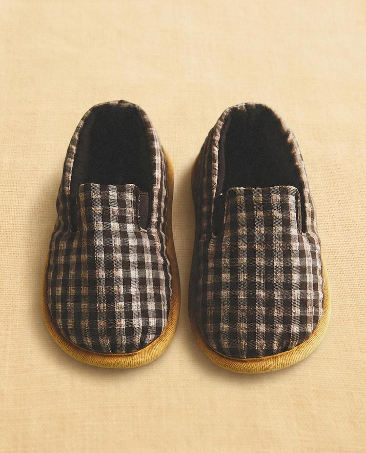 Дитячі домашні капці з принтом у клітинку віші. Мають еластичну гумку для кращого прилягання.