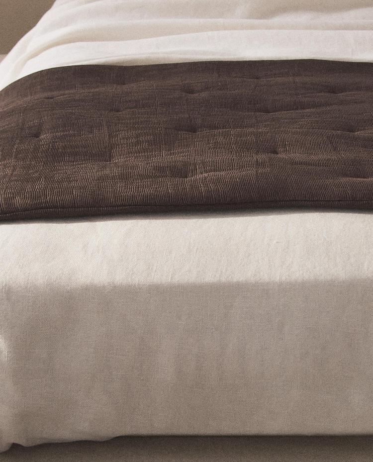 Стьобане покривало на ніжку ліжка з плісированою поверхнею.