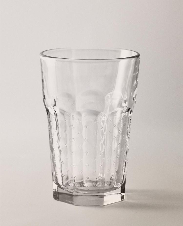 Склянка з рельєфним візерунком і квітковим оздобленням.