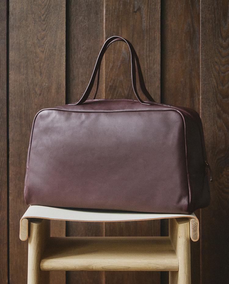 Дорожня сумка зі шкіри. Застібається на блискавку. Має внутрішню кишеню. Короткі ручки для перенесення в руці.