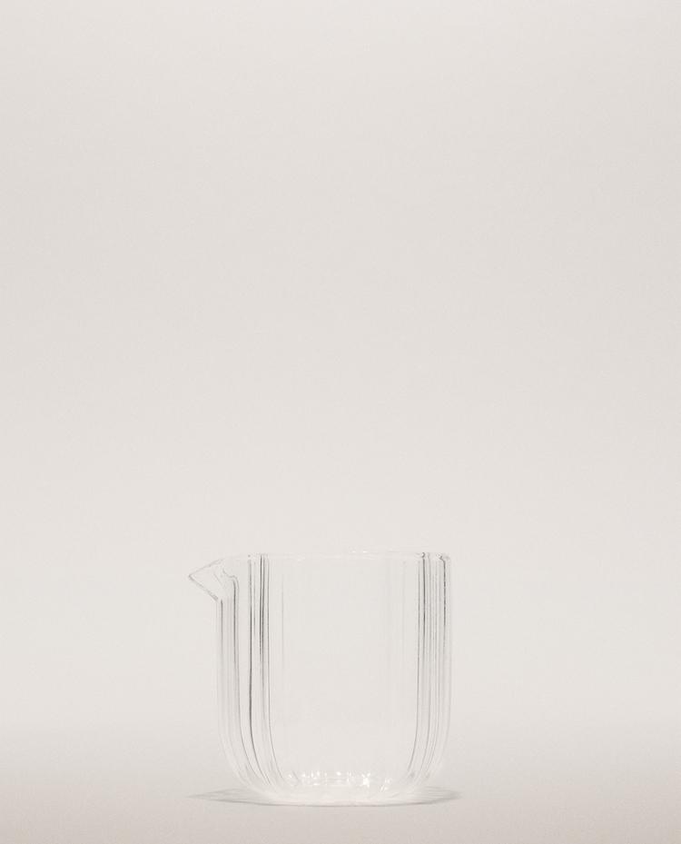 Clear borosilicate glass milk jug with a raised design.