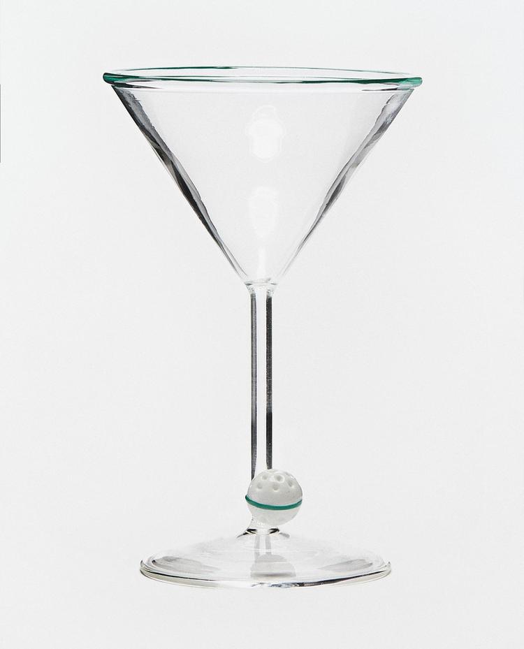 Cocktail glass made from borosilicate glass. Features a conical bowl design, a slender stem, and a circular base. Includes a decorative golf ball detail at the bottom of the stem.