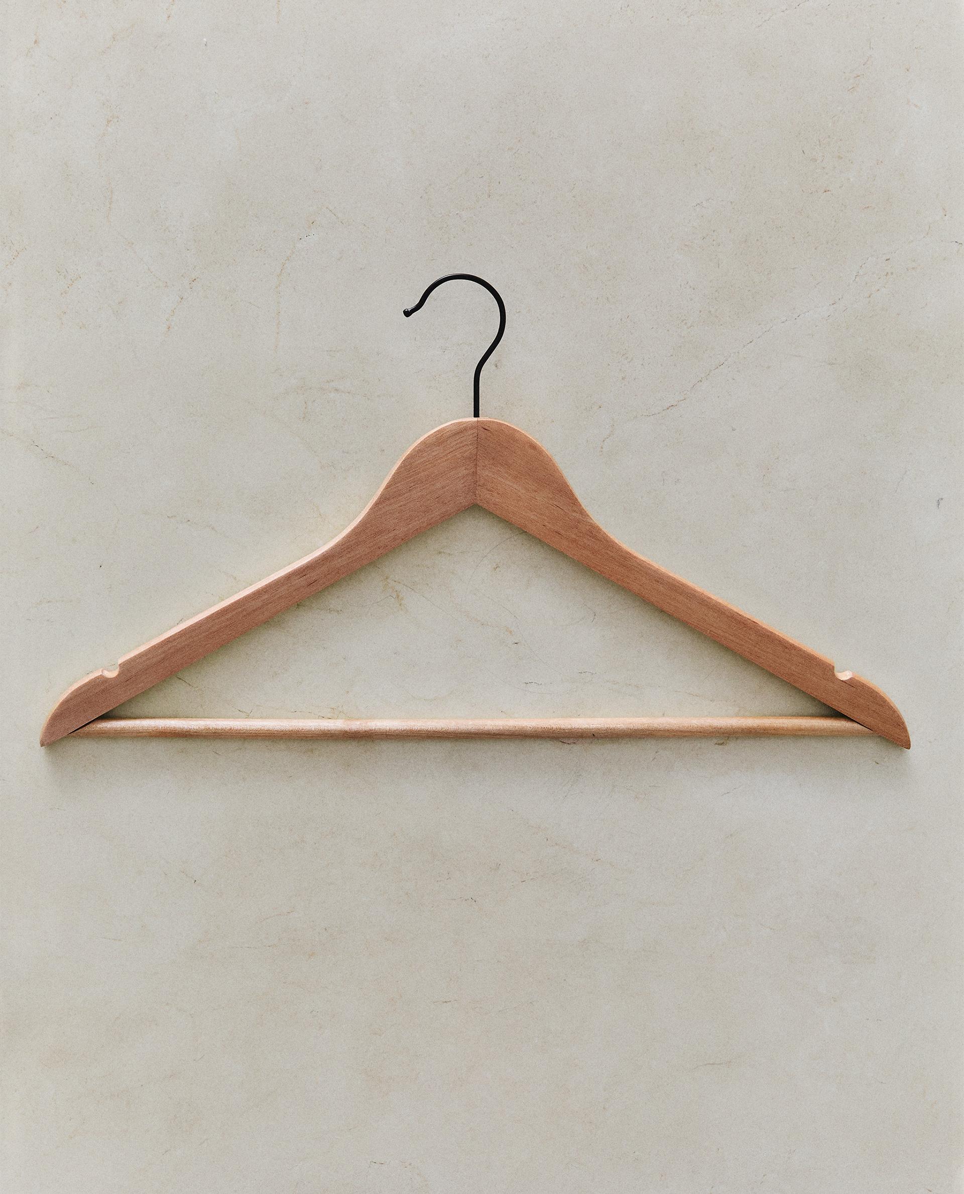 The collection combines the warmth of natural wood with the modernity of metal structures, offering a solution for every need. Equipped with a polished finish and ergonomic shape, our wooden hangers lend a boutique-style look to your wardrobe. Due to their robustness, they make the ideal choice for outerwear, such as jackets or coats. Their smooth surface also prevents delicate fabrics from snagging. To optimize space as much as possible, multi-hanger designs for trousers and skirts are an indispensable ally, as they allow you to organize several garments in the space of one, creating a visually light and uncluttered effect. Additionally, our minimalist design hangers, available in black or white, maximise the capacity of the wardrobe thanks to their slim profile, allowing more garments to be hung without feeling cramped.