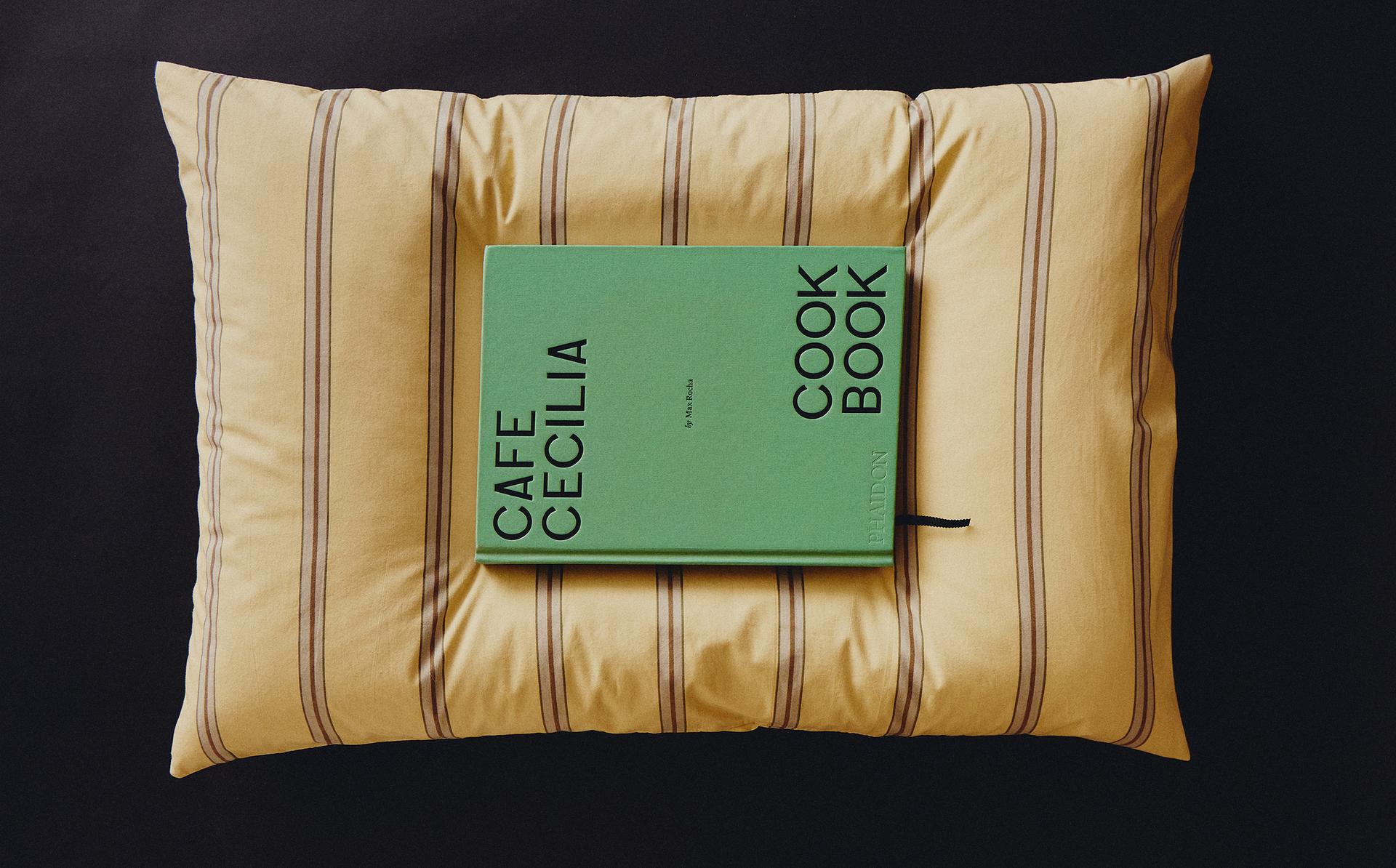 STRIPED BED LINEN, APPLIQUE AND TRAY