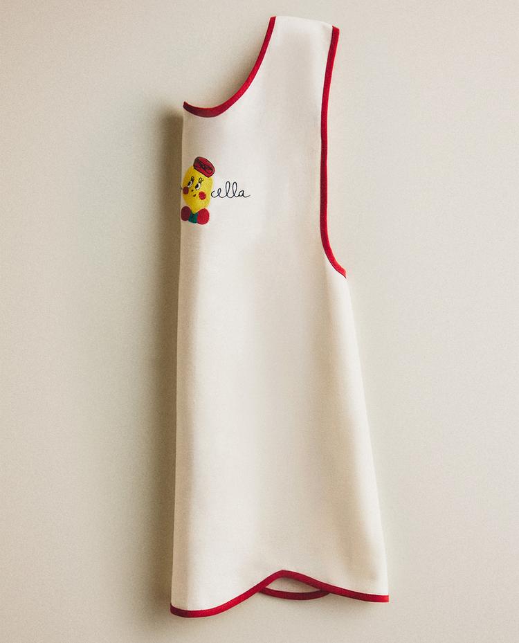 Delantal para adultos de algodón con Limoncella bordada y ribete en contraste x The Animals Observatory.