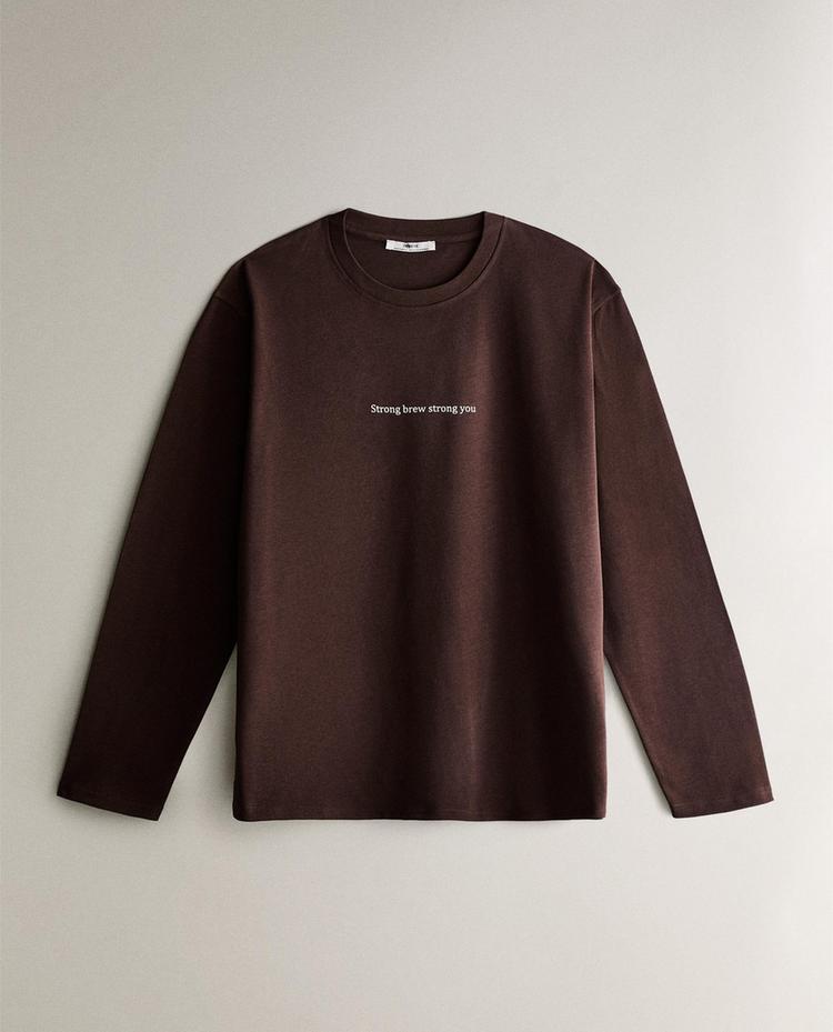 T-SHIRT MANCHES LONGUES TEXTE 25.99 € MARRON|4218/120/700T-shirt à manches longues en coton, coupe droite et cache-cou rond, avec la phrase « Strong brew strong you ». Sélectionner taille