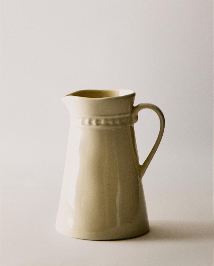 إناء حليب من الخزف الحجري بتصميم بارز.
