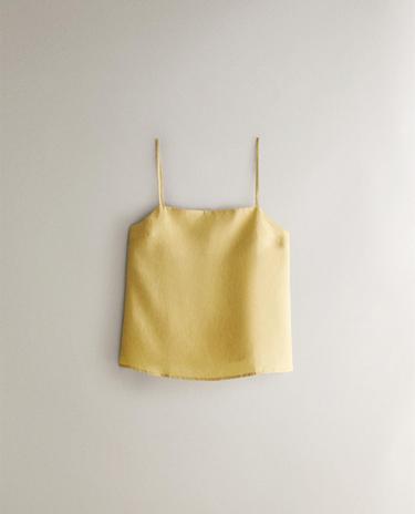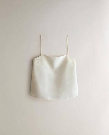 توب كتان بحمالات رفيعة وقصة مستقيمة وتصميم منسدل.