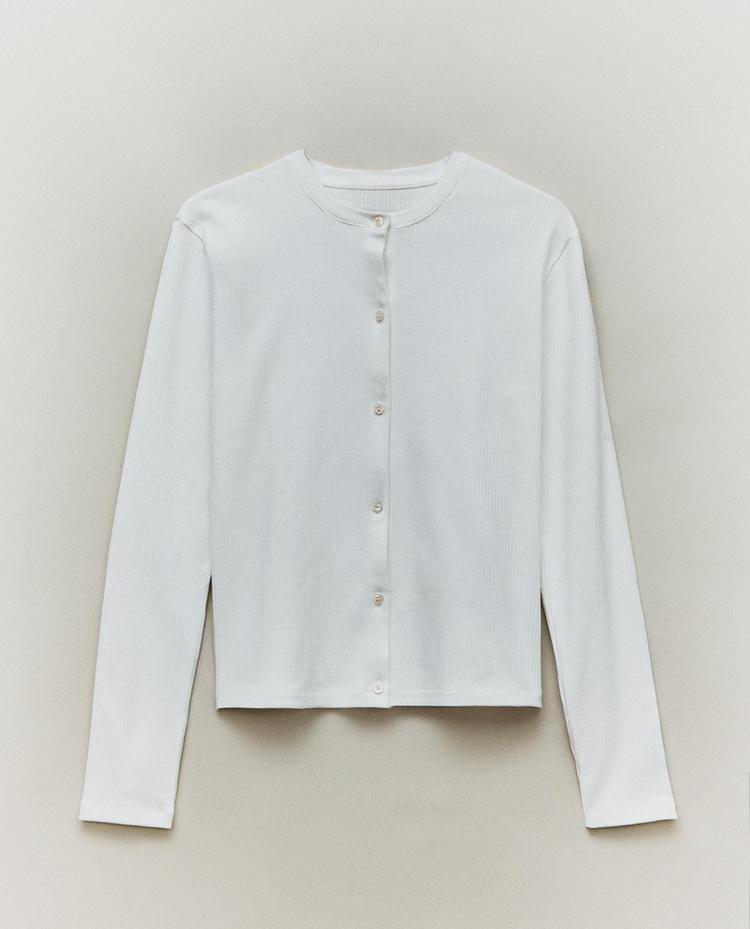 تيشرت بلون سادة وأكمام طويلة مصنوع من القطن مع تفاصيل أزرار على الأمامية.