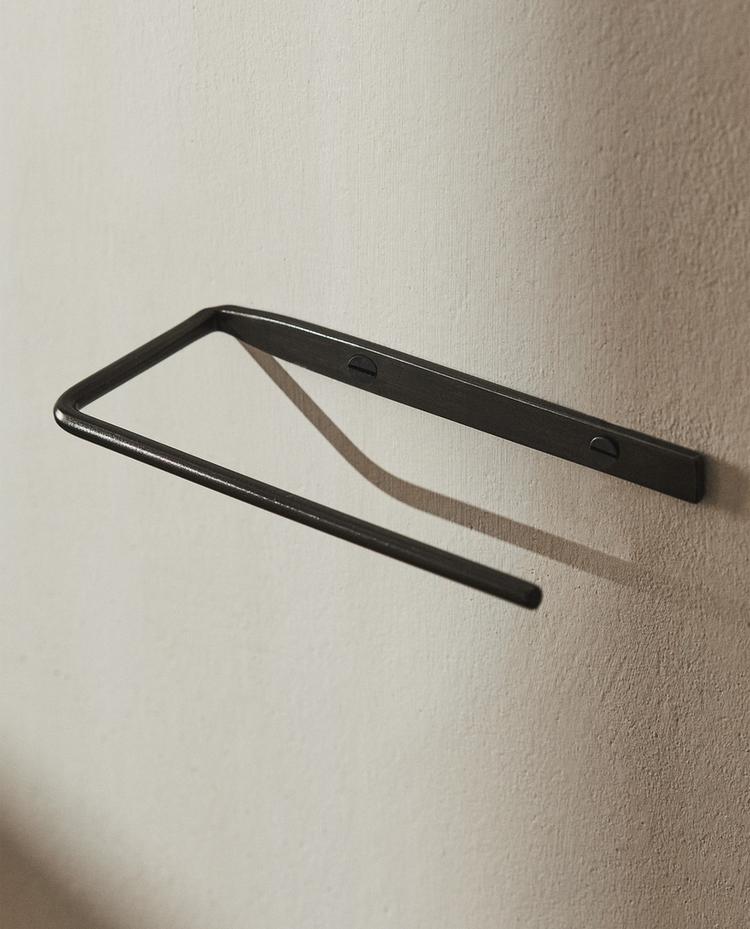 حامل بكرة ورق حمام من المعدن المتين بمظهر أسود غير لامع وهيكل خفيف الوزن بزوايا.