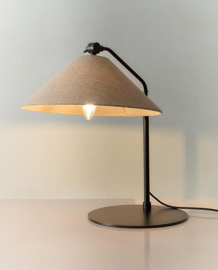 مصباح طاولة بقاعدة معدن قابلة للتعديل وغطاء كتان.