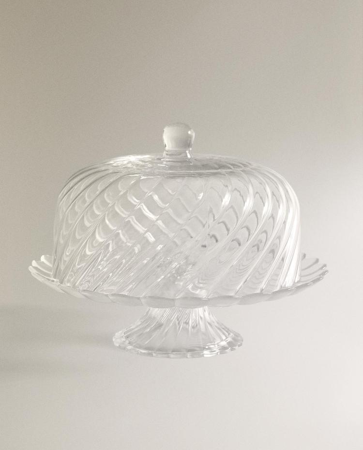 STRIPED GLASS CAKE STAND 399 AEDTRANSPARENT|5253/042/990Glass cake stand with a diagonal striped texture on the base and dome.HeightWidthDepth21 cm26 cm21 cm399 AEDEnter quantity of units to purchase Quantity updated to 1 units Measurement guideAdd 399 AED