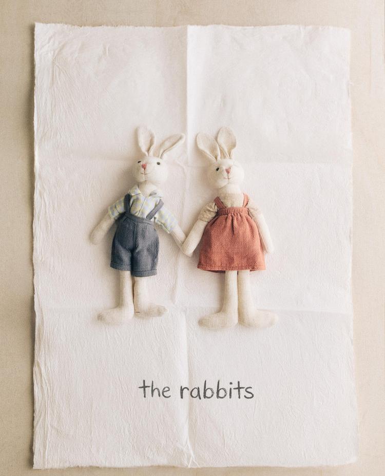 Lojë me pelush për fëmijë me një fustan ngjyrë gështenje dhe një bluzë me katrorë.