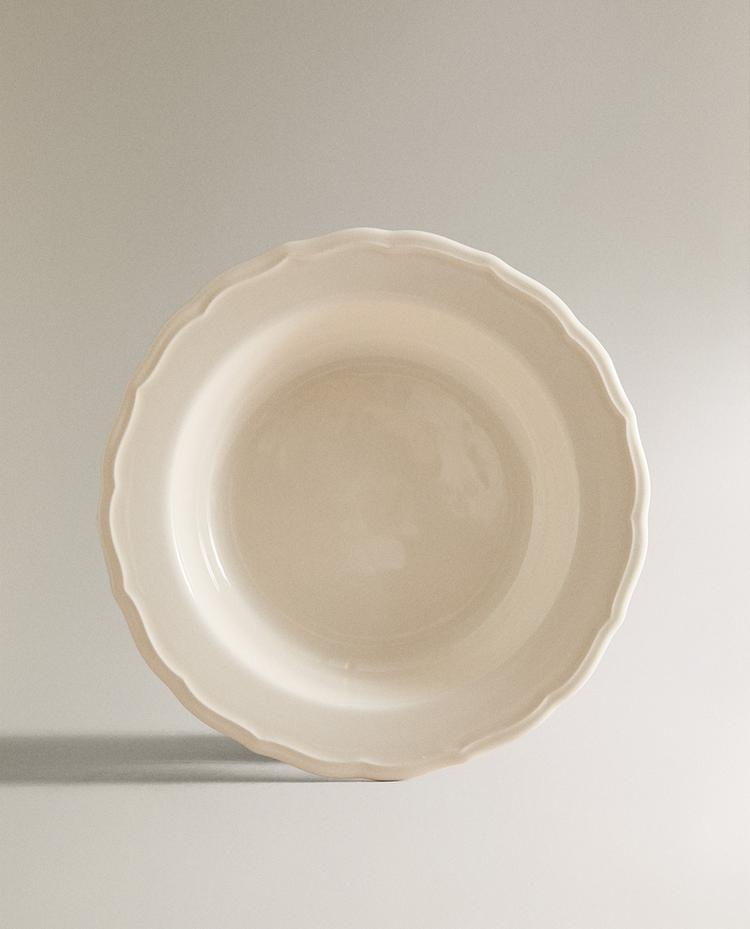 EARTHENWARE SOUP PLATE WITH RAISED-DESIGN EDGE