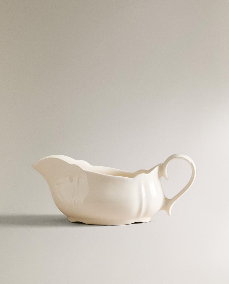 EARTHENWARE GRAVY BOAT WITH RAISED-EDGE DETAIL