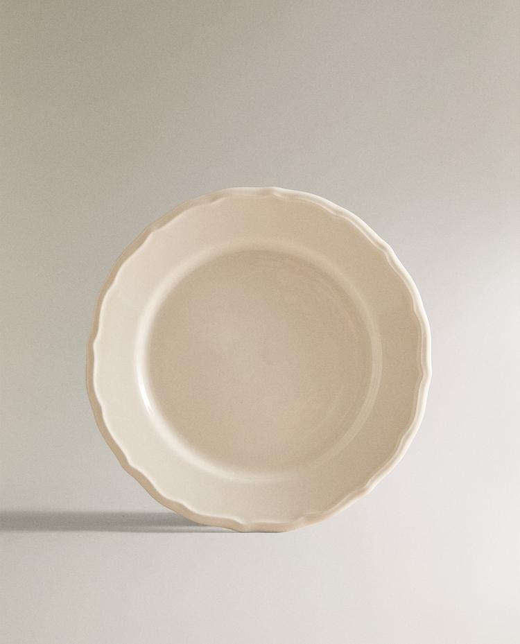 EARTHENWARE DESSERT PLATE WITH RAISED-DESIGN EDGE